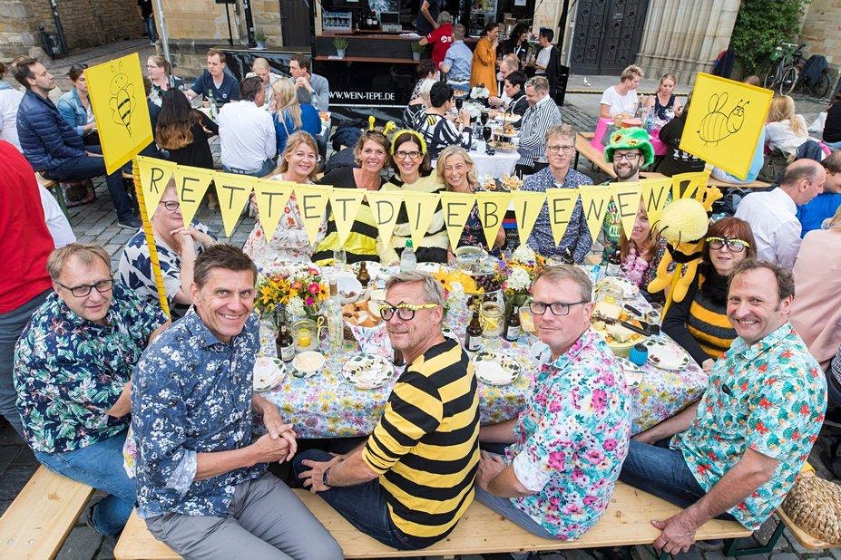 Die sechste Auflage des Bürgerdinners auf dem Marktplatz von Osnabrück war ein grandioses Fest. Sogar das Wetter hat mitgespielt. 88 Tische waren von dem Team um Organisatorin Kerstin Albrecht vorbereitet worden. Mit viel Fantasie gedeckt wurden Sie von den rund 700 Teilnehmern, die sich zu einem gemeinsamen Abendessen in Osnabrücks guter Stube trafen.