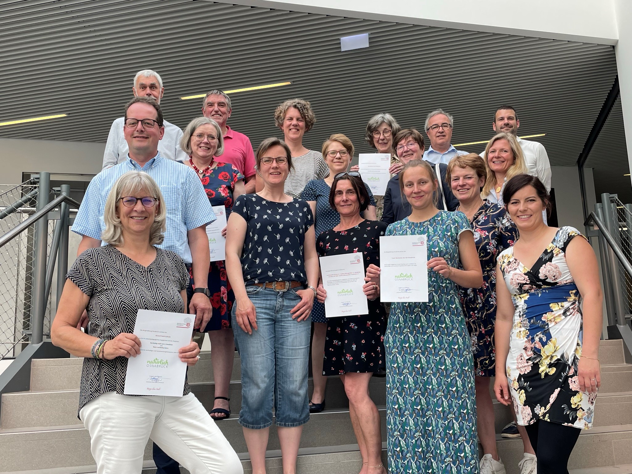 Die Anne-Frank-Schule überzeugte sogar mit zwei Projekten zum Thema Nachhaltigkeit. Kinder dieser Schule, die sonderpädagogischen Unterstützungsbedarf im Bereich körperlich-motorischer Entwicklung haben, manchmal auch mit noch weiterem Unterstützungsbedarf, konnten im Rahmen einer Projektwoche unter dem Thema Mobilität – Lebensräume und Lebensträume, durch Nutzen von ÖPV und Fahrrad erleben, wie sie ihre Einschränkungen in ihrer persönlichen Mobilität überwinden. Auch unter dem Thema Natur nachhaltig nutzen gab es viel Unterstützung durch die Bürgerstiftung Osnabrück.