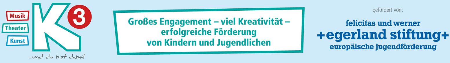 Ende 2017 entstand die Idee, das Angebot der Bürgerstiftung Osnabrück für Kinder und Jugendliche um den Bereich kultureller Bildung, Kunst, Theater und Musik zu ergänzen. Der Name dafür wurde in der ersten Teamsitzung der beteiligten Organisationen und Pädagog*innen gefunden: „K 3 … und du bist dabei!“. Kinder und Jugendliche – besonders aus sozial benachteiligten Familien – sollten Zugang zu einem vielfältigen Angebot kultureller Bildung erhalten. Der Vorstand der Bürgerstiftung hat sich diese Idee zu eigen gemacht. Die Felicitas und Werner Egerland Stiftung war davon sehr angetan und hat nach einigen Gesprächen entschieden, das Projekt für drei Jahre bis Mitte 2021 vollständig zu fördern.