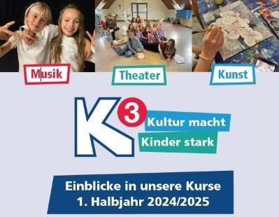 Außerdem finden in Kinder- und Jugendtreffs sowie verschiedenen Kulturorten K 3 – Kurse statt. Mit diesem Projekt erhalten Kinder und Jugendliche in wöchentlichen Kursen die Chance kultureller Teilhabe und Bildung in den Sparten Kunst, Theater oder Musik.