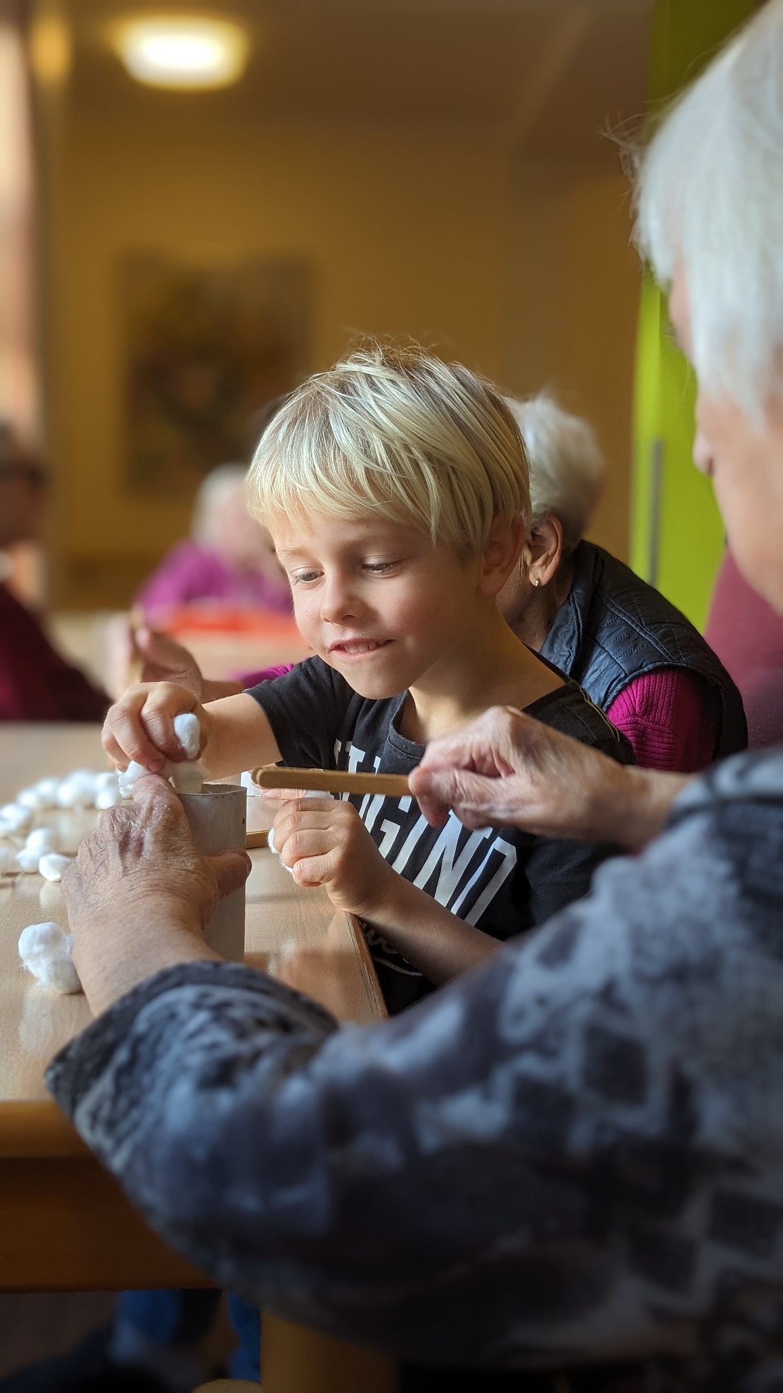 Vom gemeinsamen Ausflug zum Weihnachtsmarkt, über einen gemütlichen Adventsnachmittag mit Senior:innen, Kindern und ihren Eltern, bis hin zu fröhlichen Watte-Schneeballschlachten – der Winter hält viele kleine Abenteuer bereit. Inmitten der kühlen Tage sind es vor allem die herzlichen Begegnungen zwischen den Generationen, die das Projekt lebendig machen. Auch in dieser Jahreszeit wird es uns nicht langweilig – im Gegenteil: Wir schöpfen aus den unvergesslichen Erlebnissen, die Alt und Jung miteinander teilen, neue Kraft und Freude. Ein herzliches Dankeschön an alle, die uns unterstützen und damit diese besonderen Momente möglich machen!